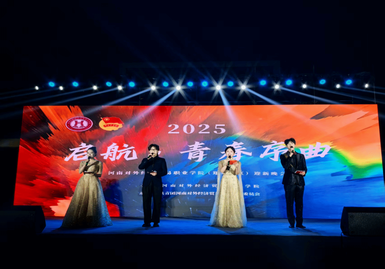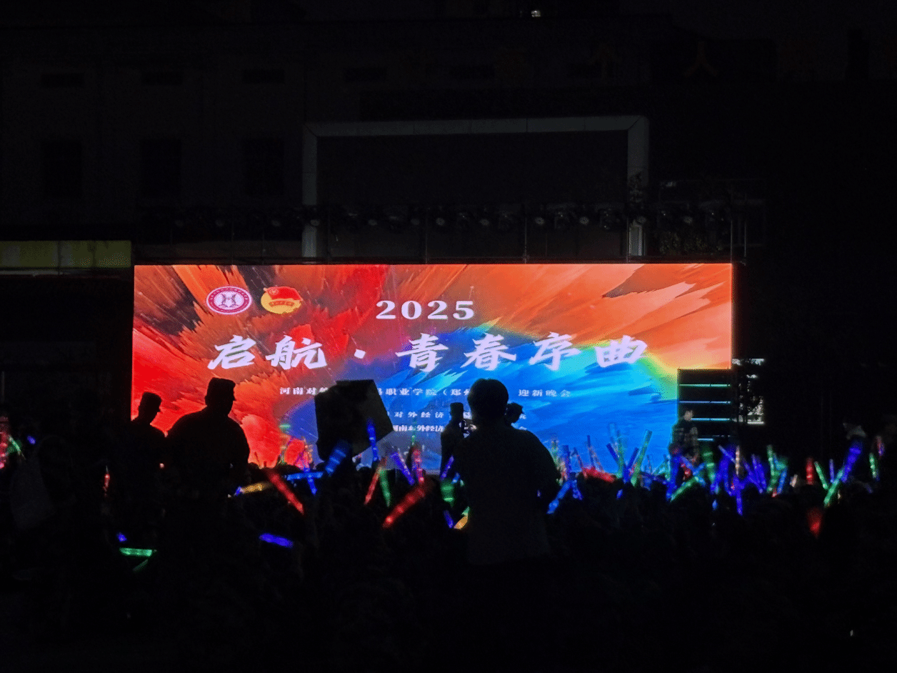 2025年10月15日晚,河南对外经济贸易职业学院“启航·青春序曲”主题迎新晚会在郑州校区校园内隆重举行。全校师生齐聚一堂,共同观看演出,以此欢迎2025级新生加入校园大家庭,营造热烈且温馨的迎新氛围。