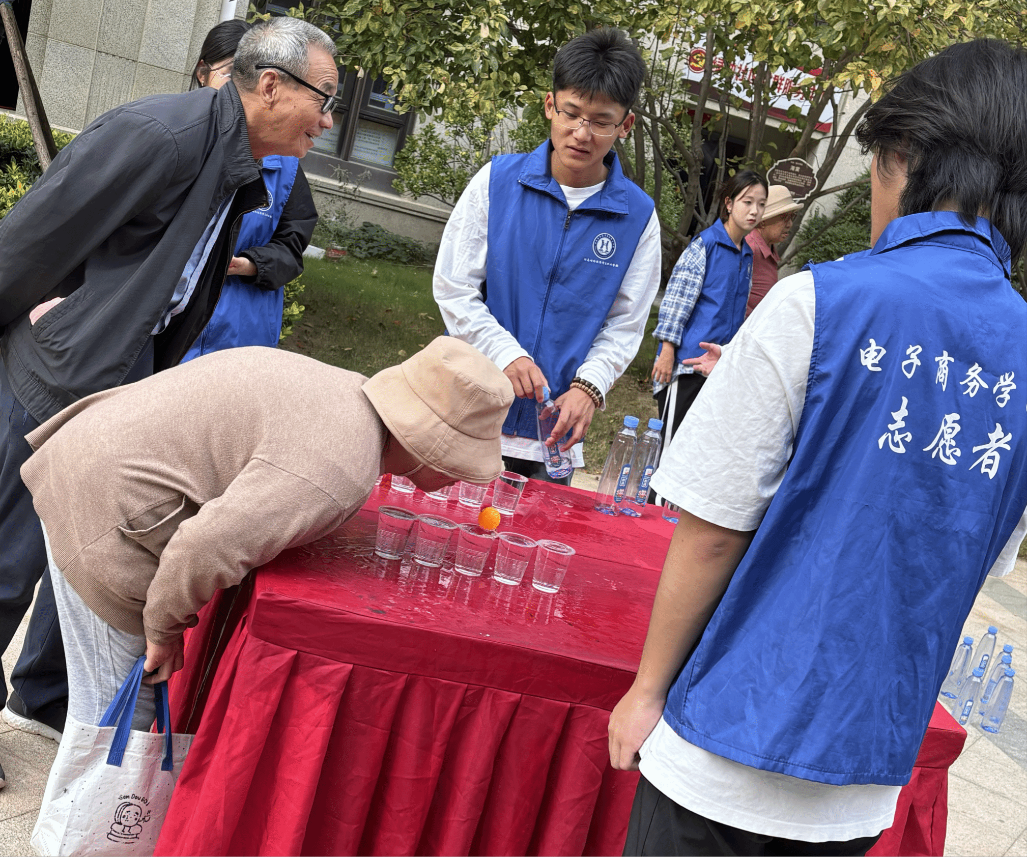 活动中,精心设计了“乒乓球过河”、“踢毽子”、“保龄球”、“套圈”、“返老还童—滚球游戏”等一系列趣味横生的小游戏。在游戏过程中,志愿者们主动与老人们交流互动,耐心倾听他们的故事,了解他们的需求和想法,力求为老人们带来一个愉快的游戏体验,并营造出关爱老人的温馨氛围。在志愿者的帮助下,一些行动不便的老人也积极参与了游戏,享受了节日的乐趣。