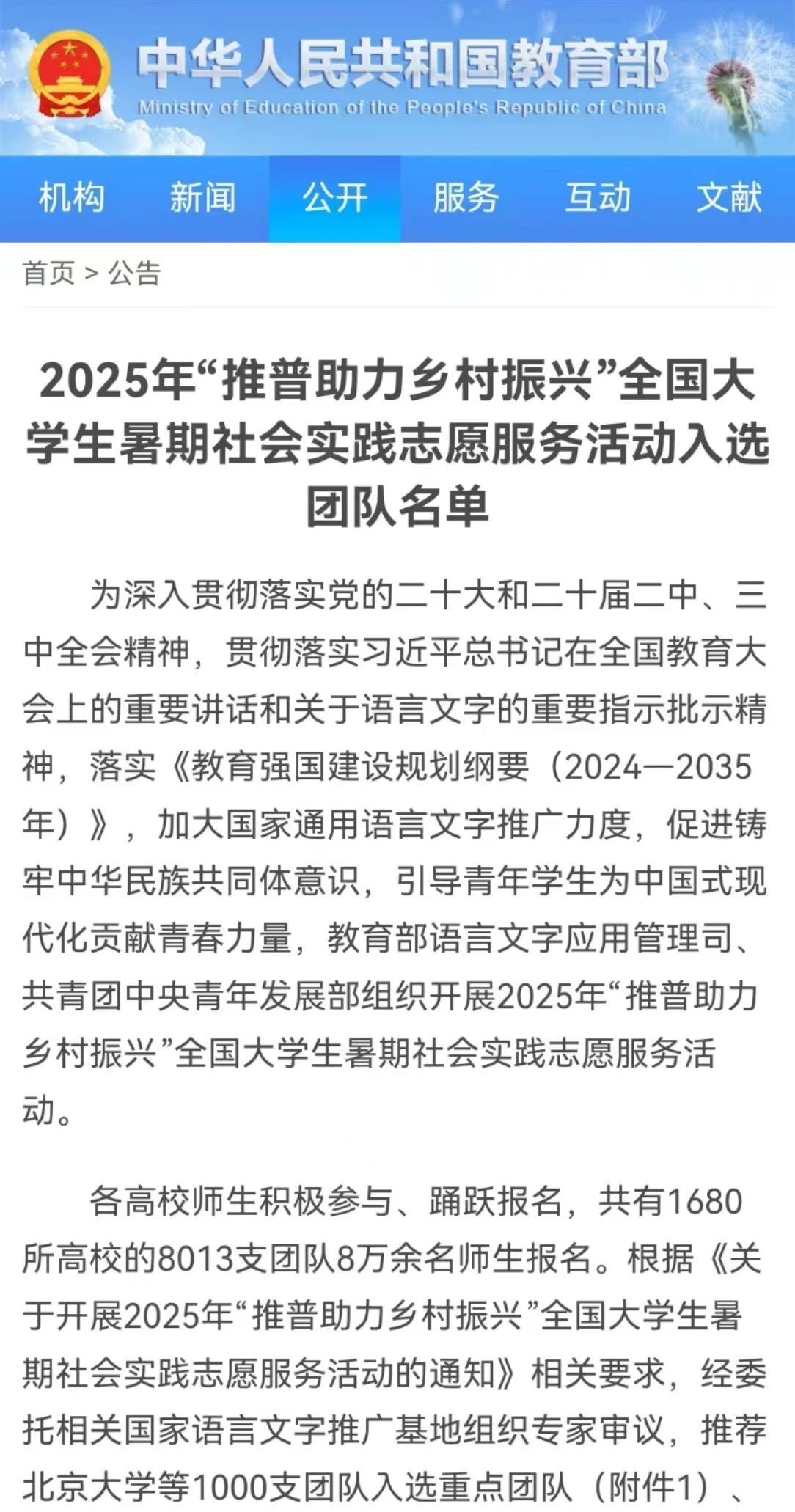 2025年“推普助力 乡村振兴”入选名单