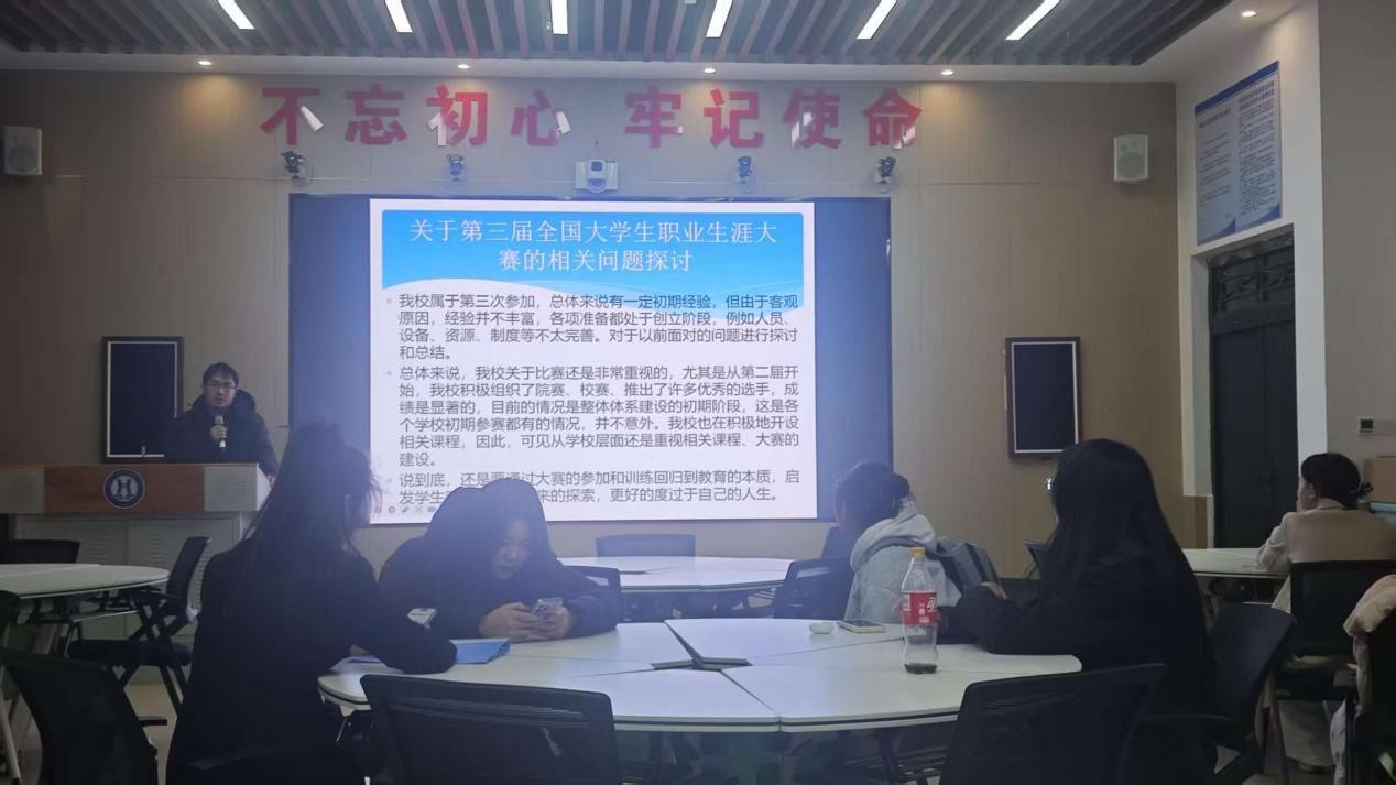 比赛结束后,蒋理昊老师为全体参赛学生带来了干货满满的赛后指导。他围绕比赛中的核心注意事项展开详细讲解,强调职业生涯规划应立足个人实际与行业需求,突出“个性化”与“可操作性”。