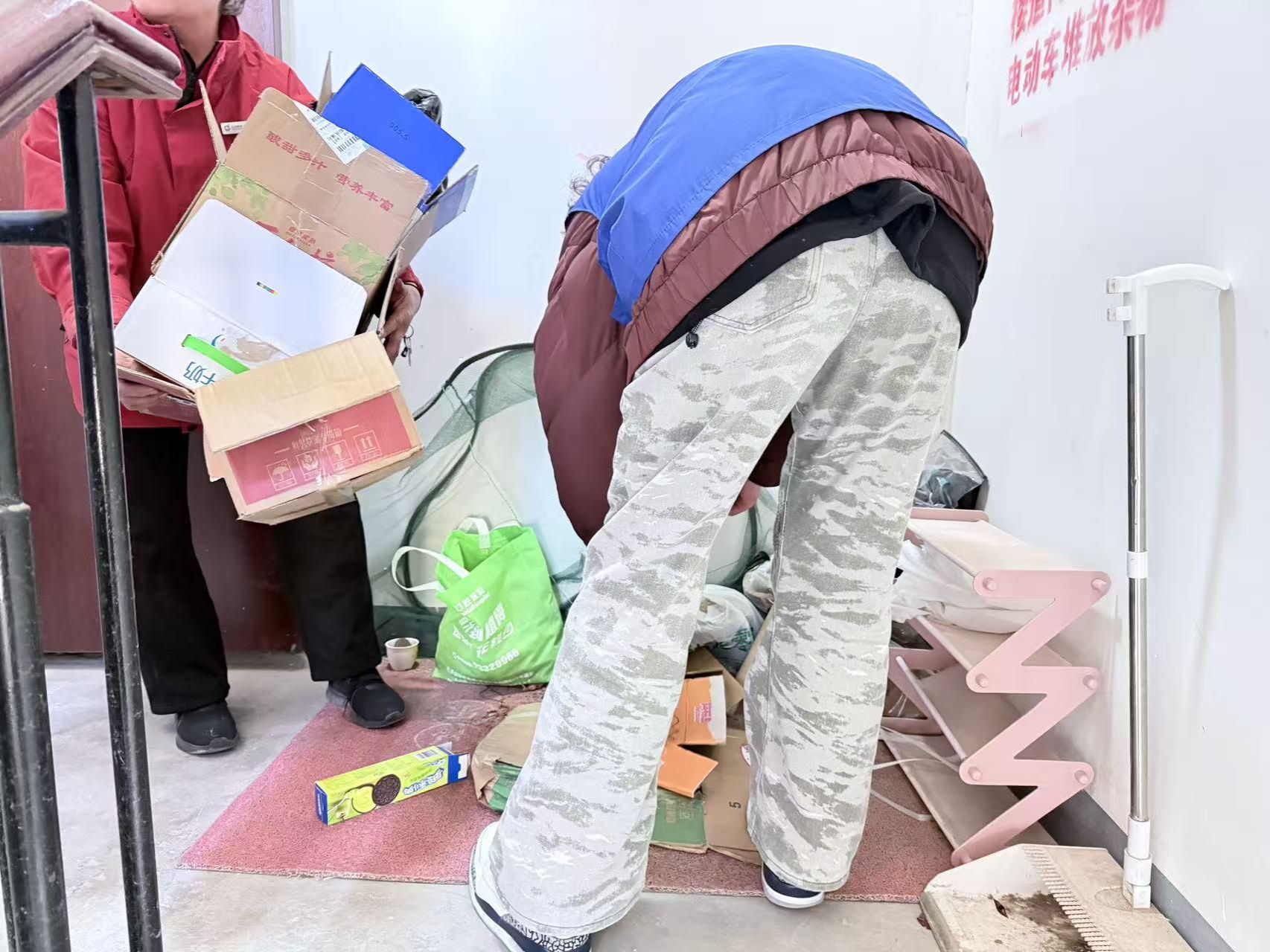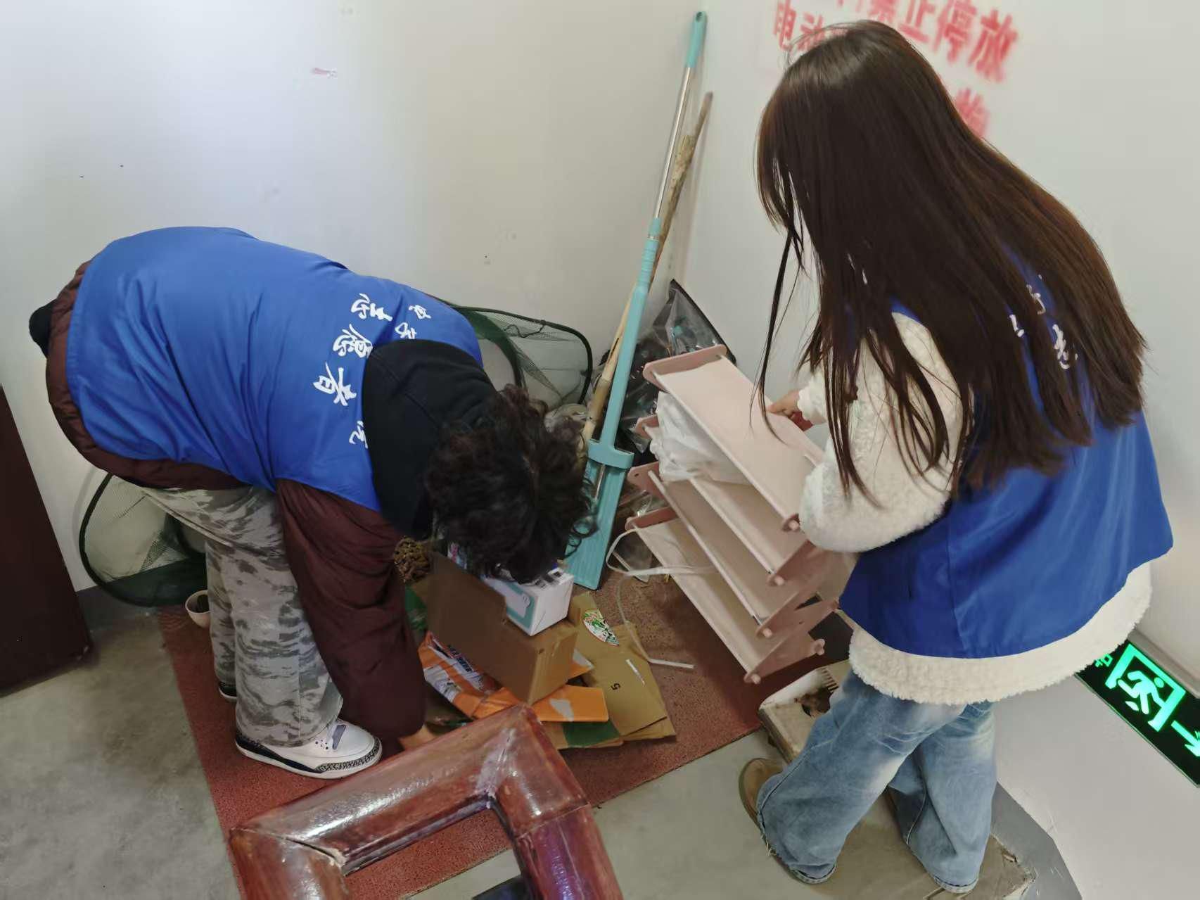 活动当天,志愿者们身着蓝色志愿马甲,分成多个小组有序开展工作:有的手持垃圾夹、垃圾袋,细致清理小区草坪、步道的烟头、纸屑等杂物;有的协助居民整理楼道堆放的纸箱、杂物,规范公共区域物品摆放;还有的帮忙搬运闲置物品,为社区公共空间“减负”。