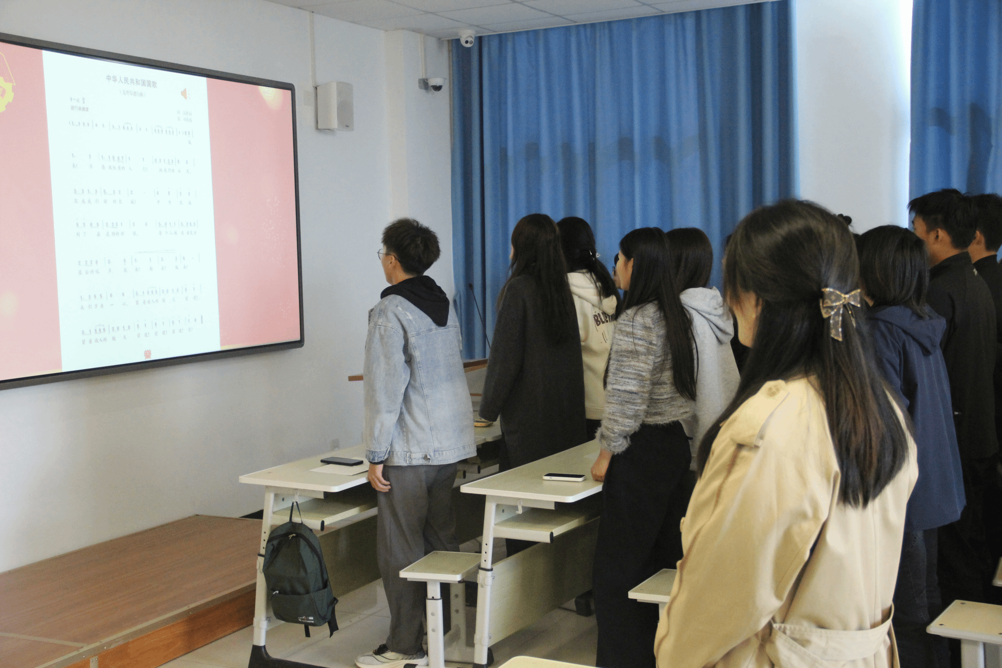 仪式再次迎来高潮,全体人员起立,奏唱团歌。激昂的旋律和铿锵的歌词激发了大家的爱国热情和奋斗精神,也为此次开班仪式画上了圆满的句号。