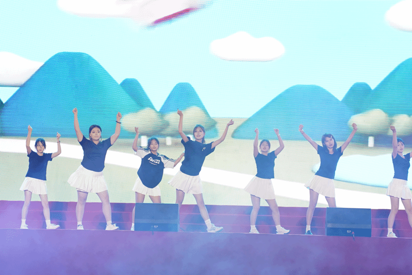 当开场舞《我们一起闯》的音乐响起,校舞蹈队的同学们身着亮色服装,以利落的动作、饱满的精神跃动于舞台。跳跃的舞步、整齐的队形,如同青春的脉搏在跳动,瞬间点燃了全场氛围,也正式拉开了晚会的序幕。