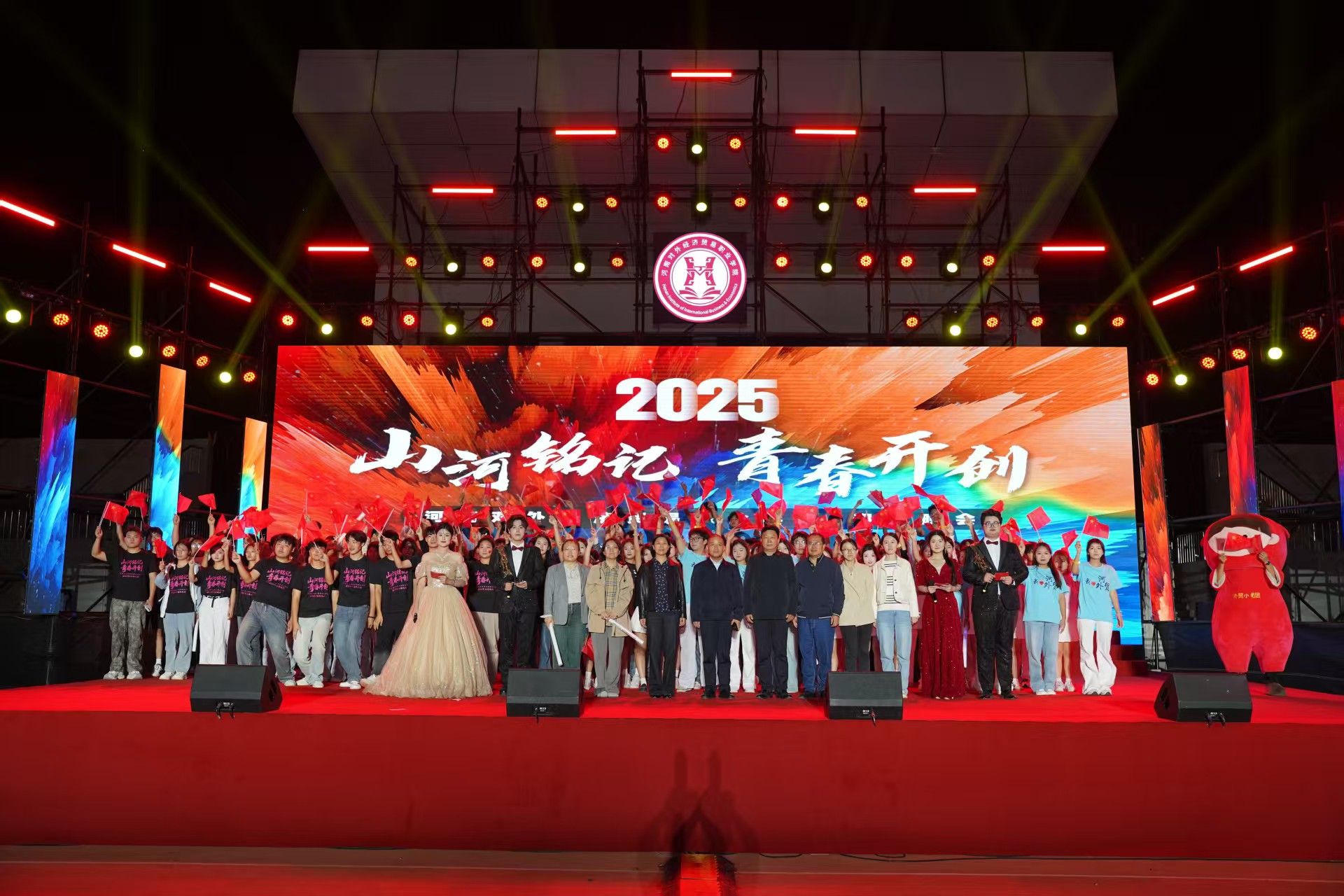 金秋送爽,丹桂飘香。为热烈庆祝中华人民共和国成立76周年,同时迎接2025级新生的到来,9月29日晚,河南对外经济贸易职业学院在校田径运动场隆重举办“青春向祖国告白 新程与时代同行”庆国庆迎新生文艺晚会。校领导班子成员、各职能部门及二级院部负责人、教师代表与2025级全体新生共同观看了这场青春与家国同频、激情与梦想共振的视听盛宴。