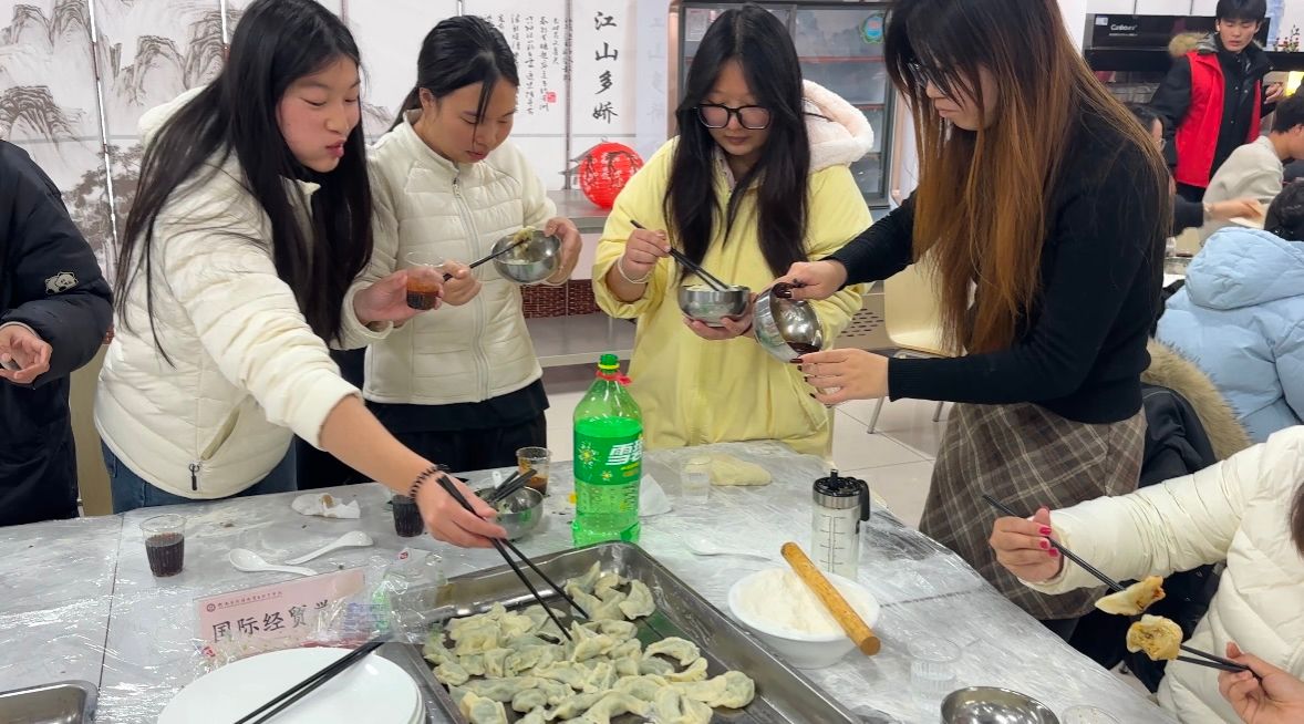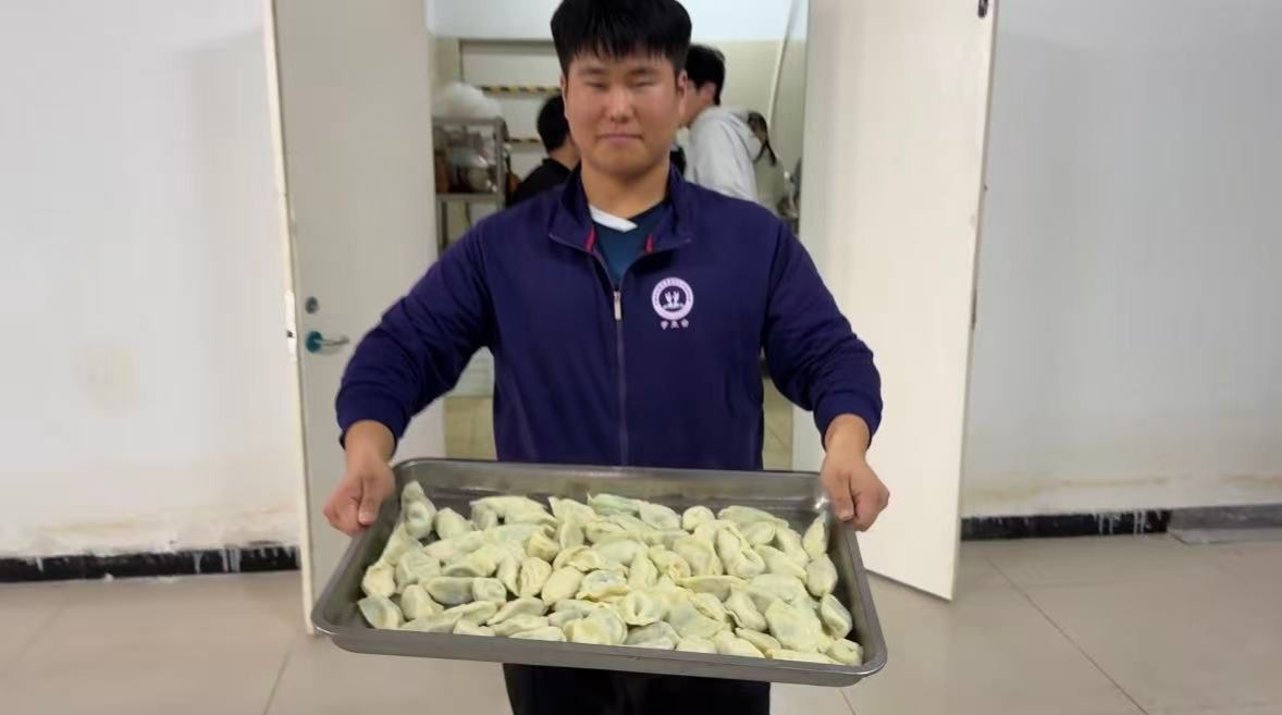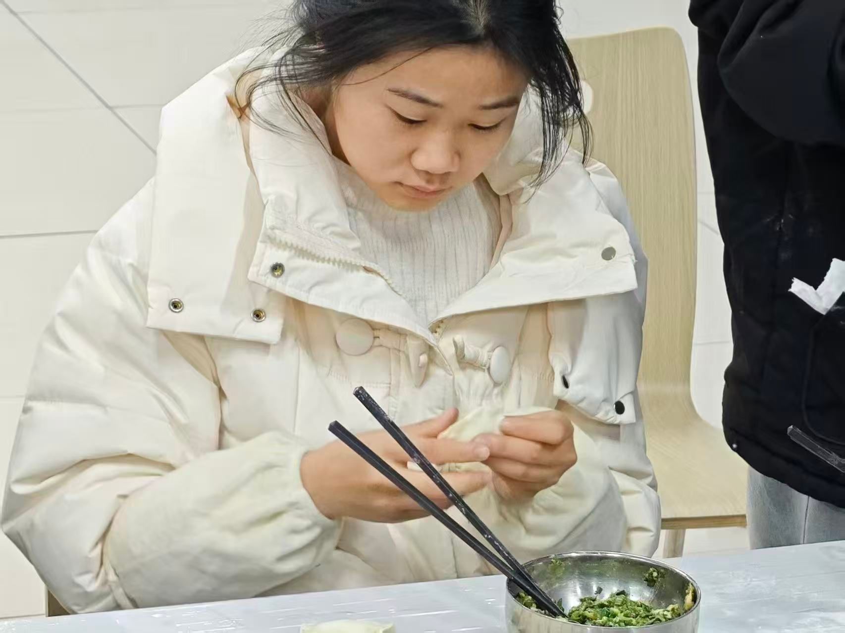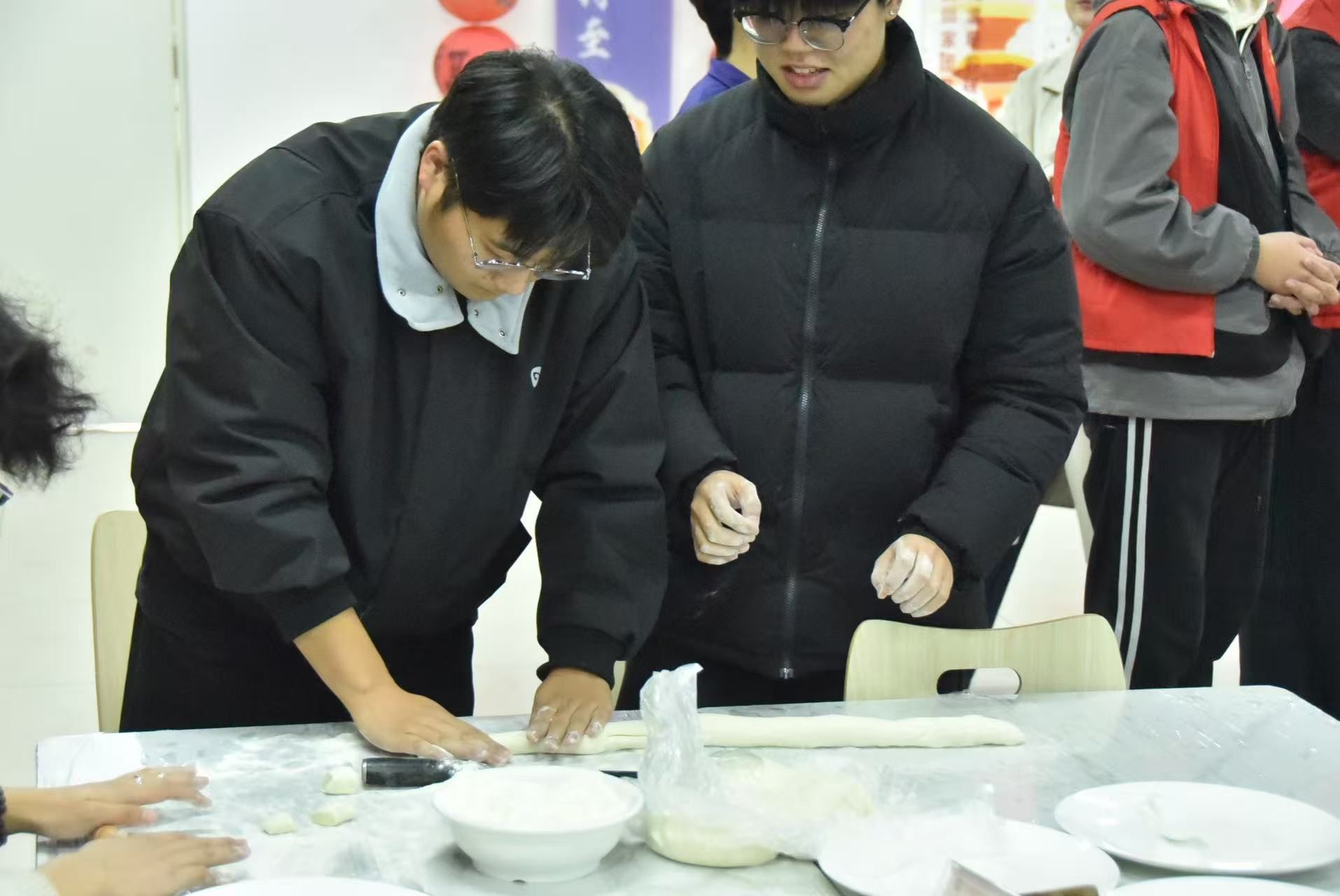 活动现场洋溢着温馨愉快的节日氛围。红色灯笼点缀其间,更添融融暖意。大家分工协作,和面、擀皮、包馅、煮饺……每一个环节都伴随着欢声与笑语。不少同学虽是初次尝试,却格外投入,场面其乐融融,温情流淌。