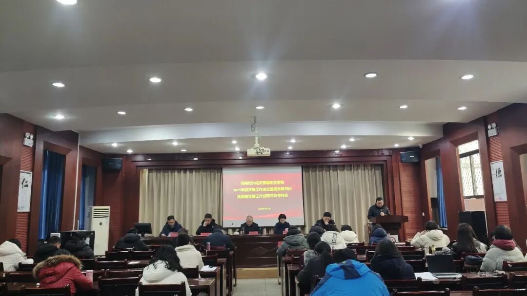 1月19日上午,我校在郑州校区教学楼一楼报告厅召开2025年度党建工作会议暨党支部书记抓基层党建述职评议考核会议。全体校领导,校纪委委员,各党支部书记及委员、各部门负责人参加会议。党委副书记杨宏涛主持会议。