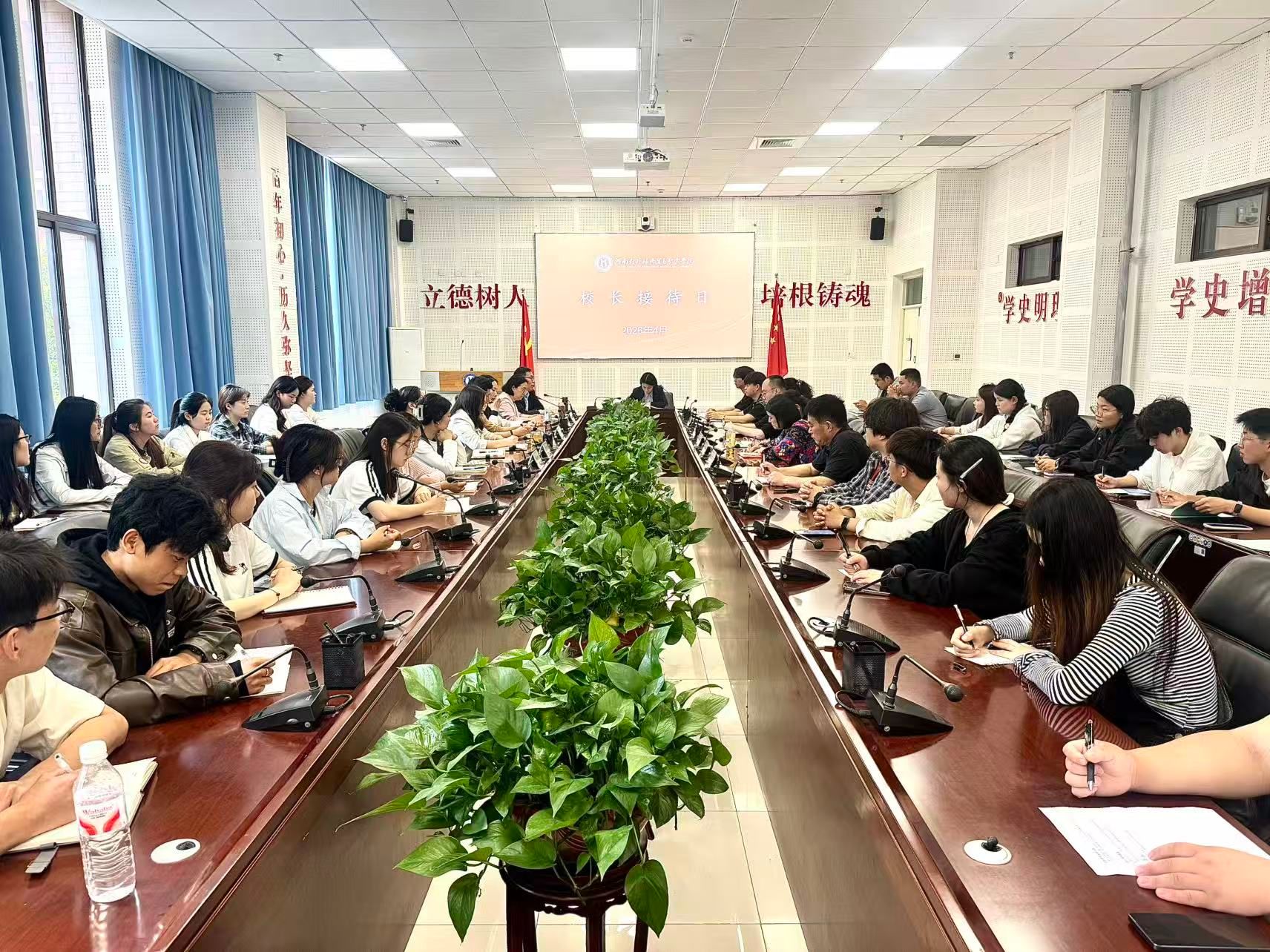 为深入践行“以学生为中心”的教育理念,积极回应学生关切、解决校园实际问题,2026年春季学期“校长接待日”活动于4月28日顺利举行。校长张倩、纪委书记高鸿翔出席会议,学校相关职能部门及二级学院负责人与学生代表进行面对面交流。
