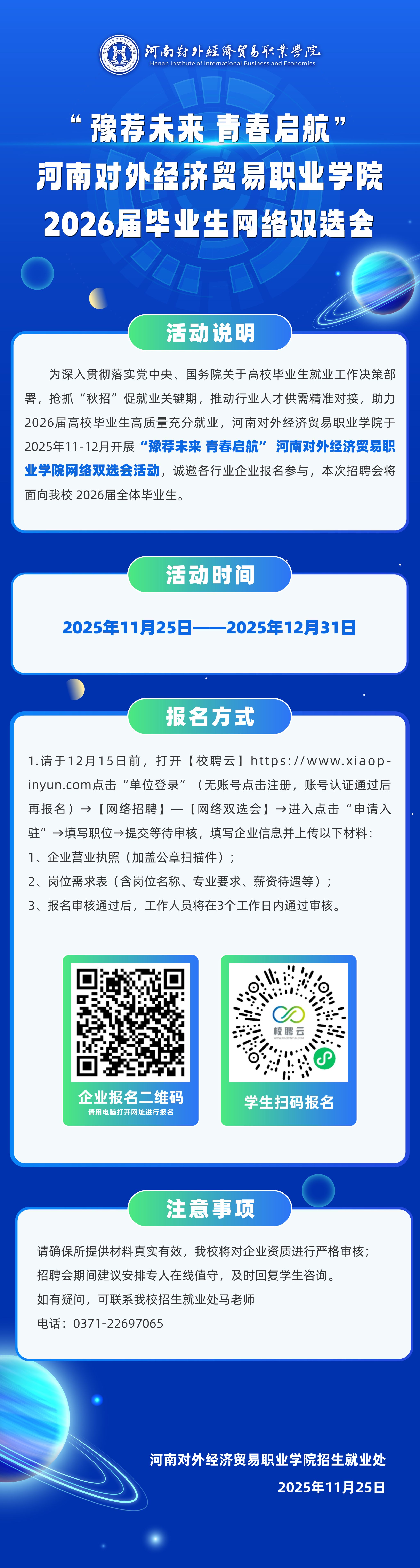 上一条:河南对外经济贸易职业学院2026届毕业生生源信息