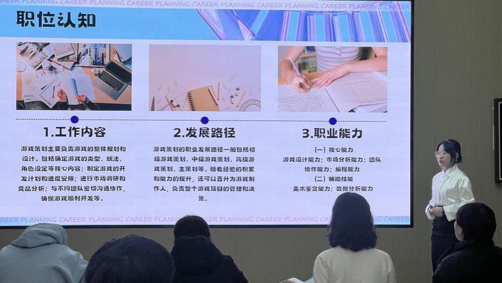 比赛现场同学们立足自身所学,结合兴趣志向,以清晰的逻辑、详实的数据,全方位剖析自我,挖掘自身独特优势与亟待弥补的短板。聚焦目标职业时,新兴领域成为热门选择,同学详述行业爆发式增长下对专业人才的渴求,从技术攻坚到应用落地,勾勒出在这片“科技蓝海”的奋进路线;在汇报交流中薪火相传经验技术。