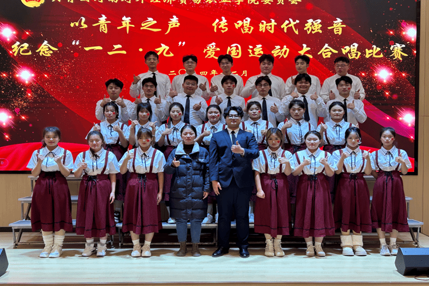 在纪念“一二·九爱国运动大合唱”校级决赛的舞台上,国际经贸学院函夏合唱团以一曲《如愿》荣获三等奖,这不仅是对他们辛勤训练的肯定,也是对国贸学子精神风貌的一次展示。