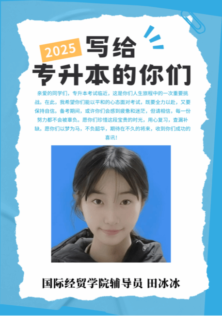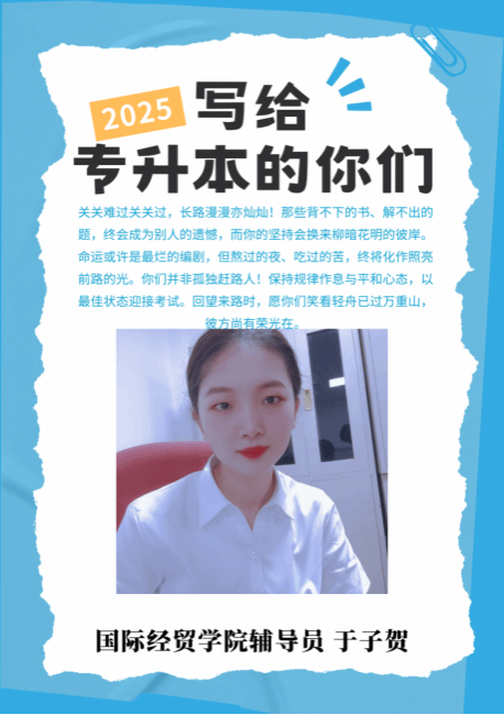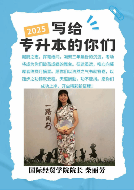 2025年河南省普通高等学校专升本考试即将来临,下面就让我们一起聆听国际经贸学院老师们为考生们送上的寄语吧!