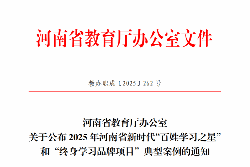 近日,捷报频传!在河南省教育厅公布的通知中,我院喜获三项荣誉,充分展现了我院在教师发展和全民终身学习方面取得的蓬勃生机与卓越成果!