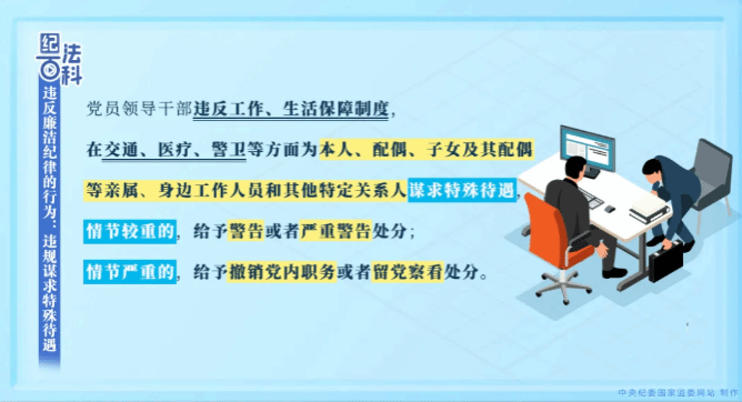 上述这些都属于谋求特殊待遇、搞特殊化行为,应坚决予以纠正,并视其情节轻重,给予相应处分。党和国家对党员领导干部的工作生活待遇标准作了明确规定,党员领导干部应当保持清正廉洁的政治本色,不搞特殊化,不谋求特殊待遇。