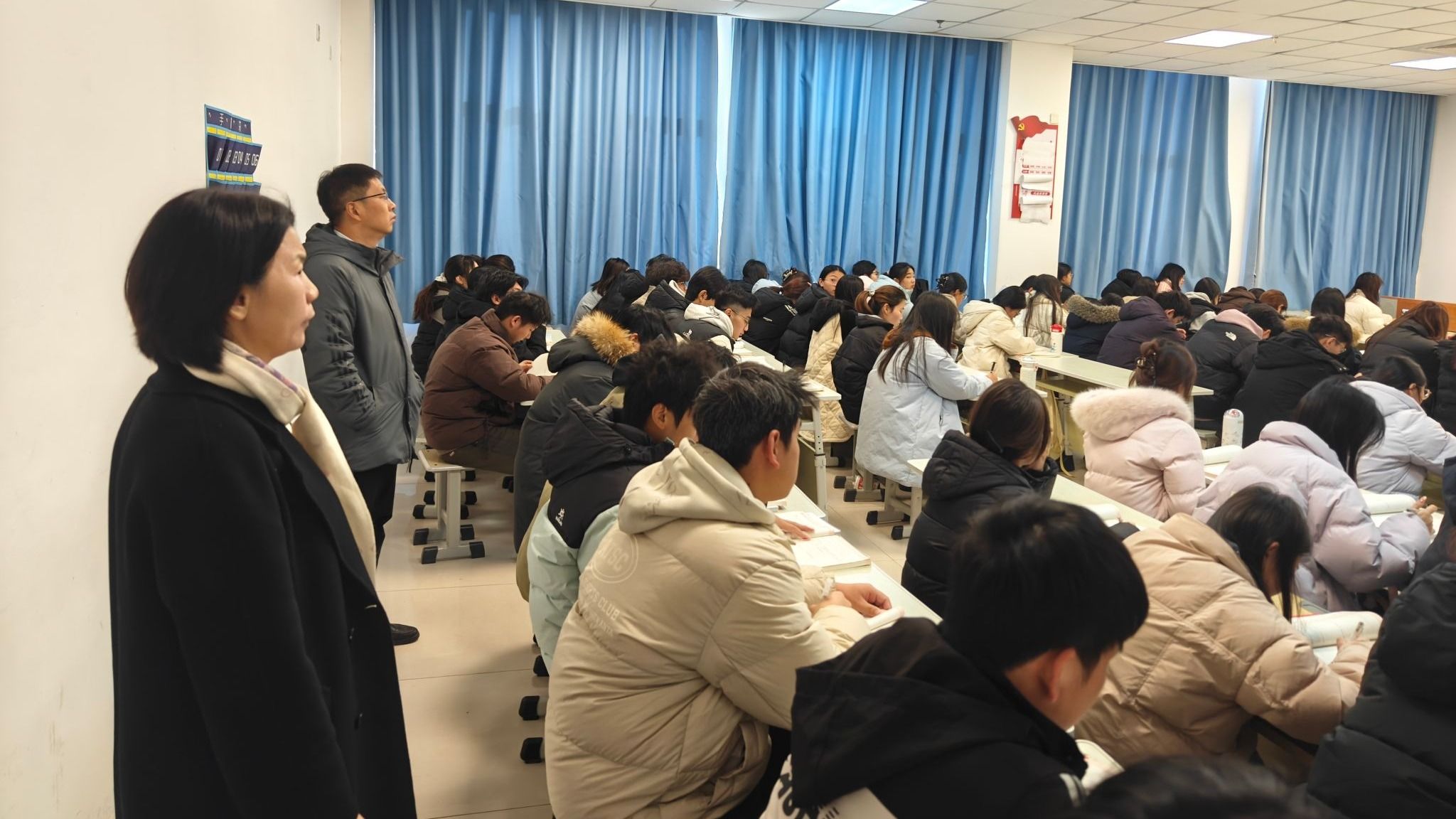 课堂教学是落实立德树人根本任务的主渠道,是提升人才培养质量的关键环节。校领导以“不打招呼、随机抽查”的方式,走进多个班级的课堂,重点核查教师到岗履职、教学内容呈现、课堂互动效果等核心教学要素,细致观察学生出勤状况、课堂专注度及师生精神面貌,并对教学设施运行、教学服务保障等配套情况进行全面排查。巡查发现,全校教学运行秩序井然,多数课堂氛围浓厚,师生互动积极高效,尤其对部分班级规范手机袋管理、引导学生专注学习的亮点做法,校领导当场予以肯定并要求全校推广。