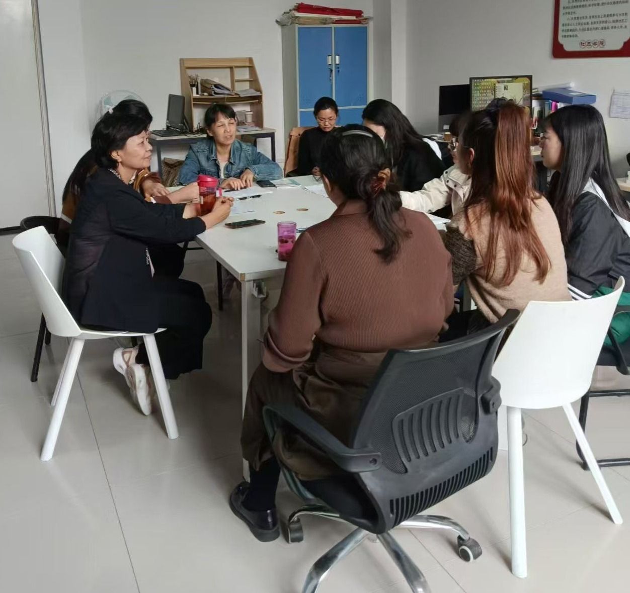 2024年10月8日下午,思政部于实训楼1001办公室召开新学期工作布置会。思政教学部全体教职工参加会议,会议由思政教学部主任霍爱萍主持。