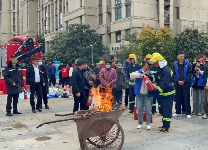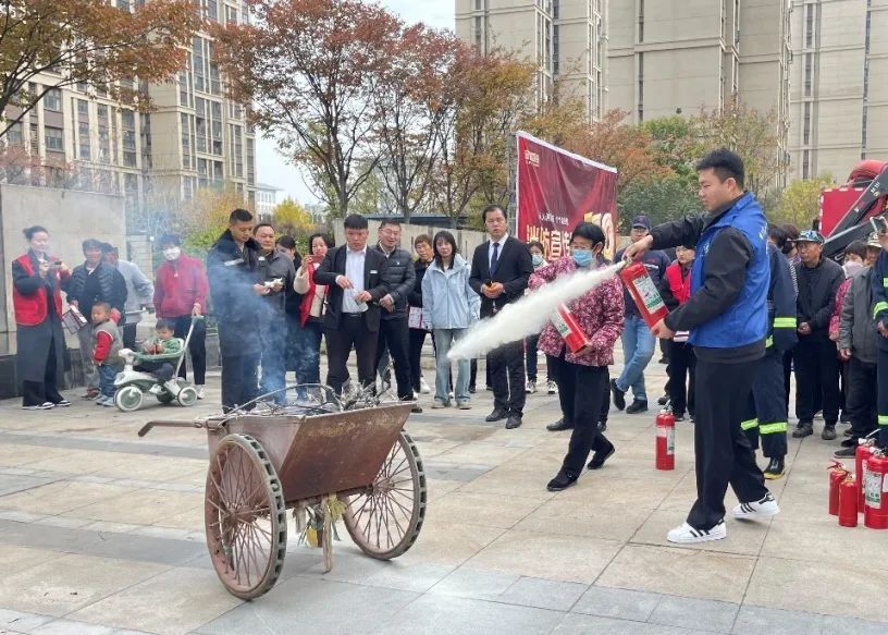 同学们在现场积极配合相关部门发放宣传资料,向居民宣讲家庭日常用火、用电、用气方面的安全知识。现场同学们还学习了灭火毯、灭火器、消防车辆救援设施的使用关键要点,还指导、协助居民使用干粉灭火器进行实际灭火操作,让大家亲身体验消防器材的使用流程。同学们在实际操作过程中,进一步熟悉且掌握了消防器材的使用方法,同时也学习到了相关的维护和管理知识。