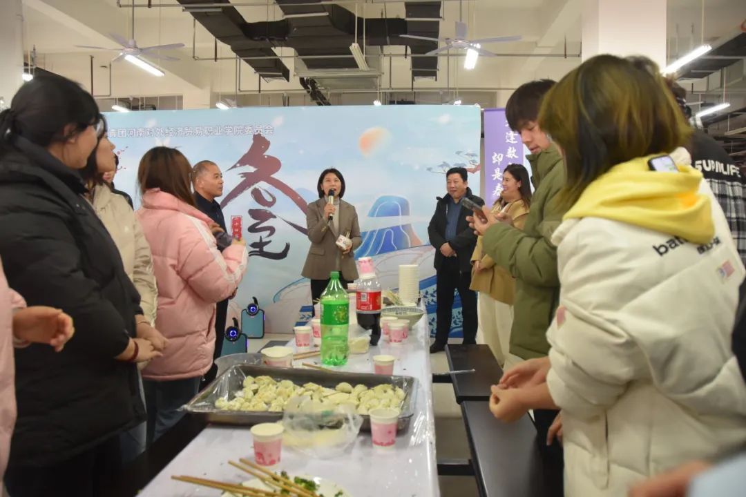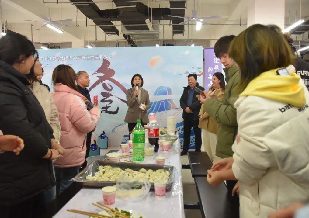 活动现场热闹非凡,党委书记程相仁、校长张倩、纪委书记董红军以及各学院老师与同学们一起包饺子、话家常,一起感受外贸的温暖。随着活动的开始,同学们三五成群,或站或坐,围绕着一张张摆满饺子皮、馅料和工具的桌子,欢声笑语不断。大家纷纷卷起袖子,迫不及待地投入到包饺子的乐趣中。