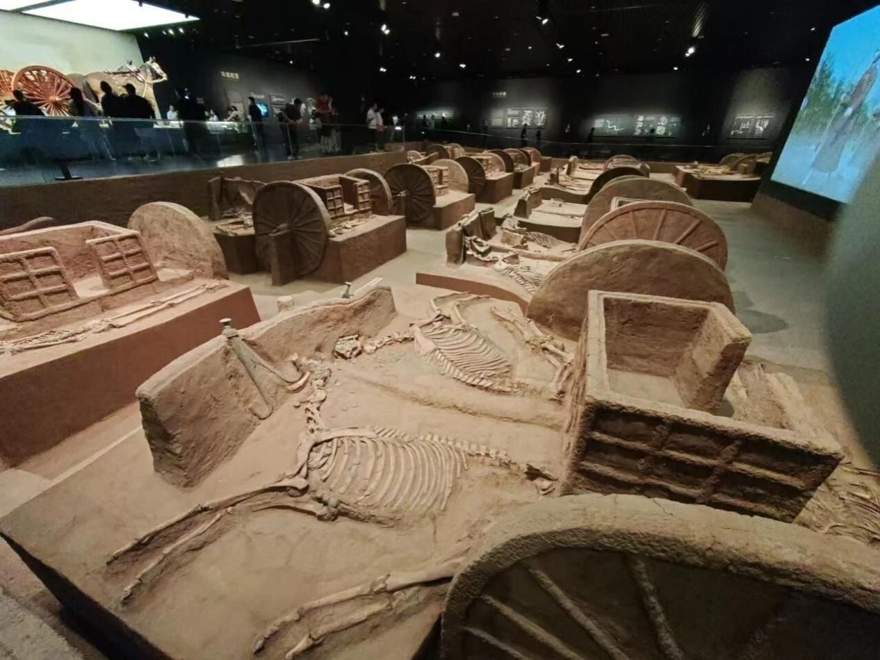 实践团第二站深入世界文化遗产——殷墟博物馆。步入展馆,首先映入成员们眼帘的便是震撼的车马坑展厅。保存完好的商代车马遗迹中,清晰可见人、车、马同坑的完整组合。这真实而立体的历史场景,瞬间将成员们拉回三千年前,让他们得以直观窥见商代贵族的出行规制、精湛的造车技艺以及森严的等级制度。