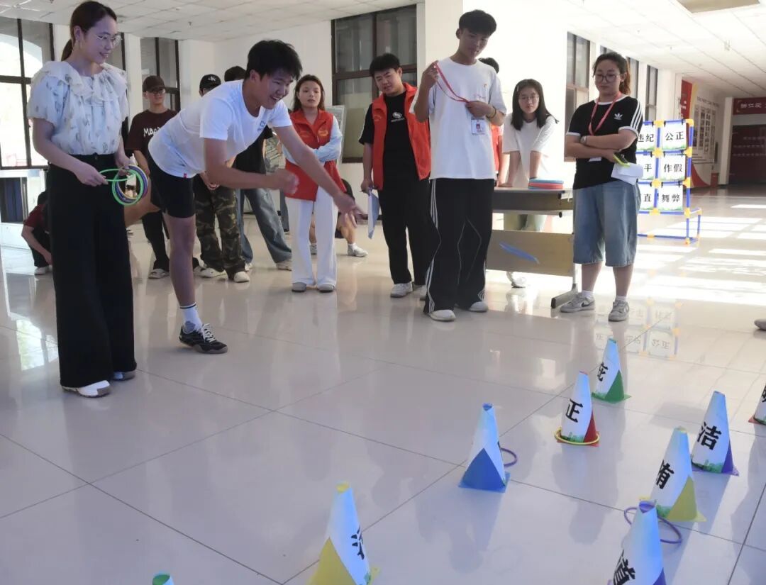 与此同时,“心廉心,青春行”纪法主题活动也在校园内火热开展。活动现场设置了多个妙趣横生的互动体验区,例如飞盘打靶、正义套圈、你画我猜等多种游戏项目,以轻松愉悦的方式让纪法知识入脑入心。