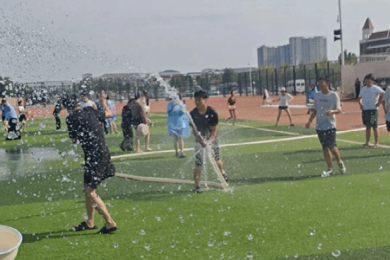 "3、2、1,开泼!"号令响起,蓄势已久的学生们立即开启"战斗模式"。水花在空中划出完美弧线,阳光下的水滴折射出彩虹般的光芒。有人组团"围攻",有人灵活走位,更有"勇士"直接举起水桶来个"透心凉"。不到十分钟,全场学生都变成了"落汤鸡",却笑得比阳光还灿烂。