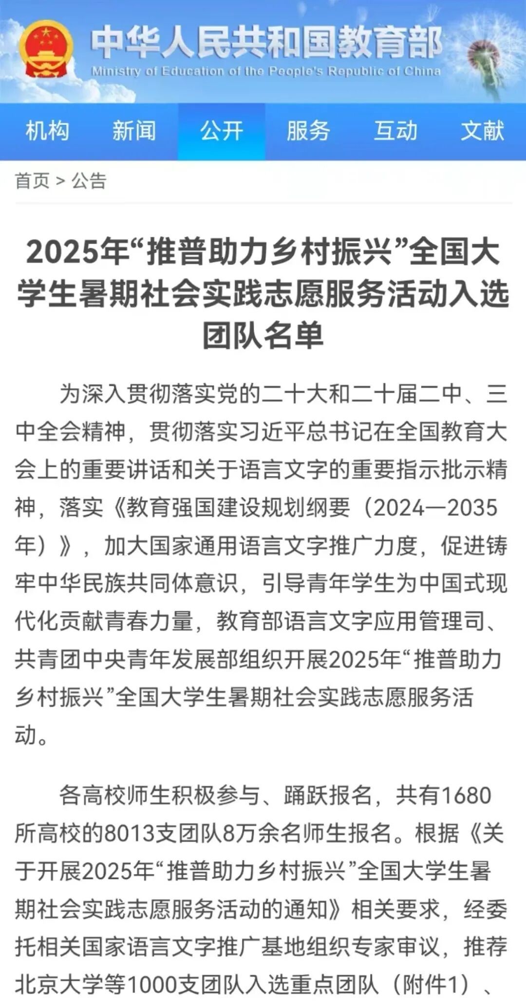 2025年“推普助力乡村振兴”入选名单