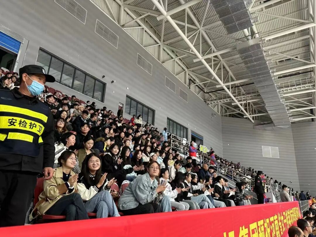 为确保活动顺利开展,学院提前统筹、周密部署。从组织学生集合、统一乘车,到引导有序入场,各环节衔接顺畅、有条不紊。整个过程不仅保障了学生的安全,也进一步强化了他们的规则意识和集体观念。赛前,多支表演队伍带来精彩节目,动感的旋律、活力的舞姿为赛事预热,现场氛围逐渐升温,同学们的期待感也愈发强烈。