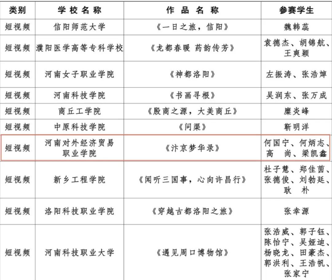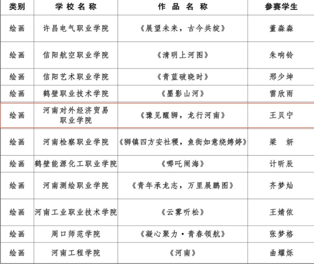 10月17日,中共河南省委宣传部、共青团河南省委、河南省教育厅、河南省文化和旅游厅、河南省科学技术厅、河南省体育局、河南省学生联合会联合印发《关于公布河南省第二十届大学生科技文化艺术活动结果的通知》,我校荣获一等奖1项,二等奖1项,三等奖3项。