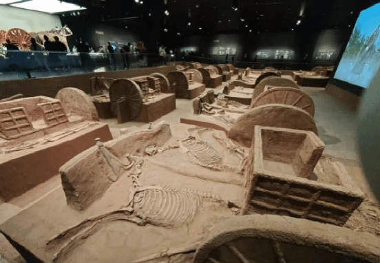 实践团第二站深入世界文化遗产——殷墟博物馆。步入展馆,首先映入成员们眼帘的便是震撼的车马坑展厅。保存完好的商代车马遗迹中,清晰可见人、车、马同坑的完整组合。这真实而立体的历史场景,瞬间将成员们拉回三千年前,让他们得以直观窥见商代贵族的出行规制、精湛的造车技艺以及森严的等级制度。