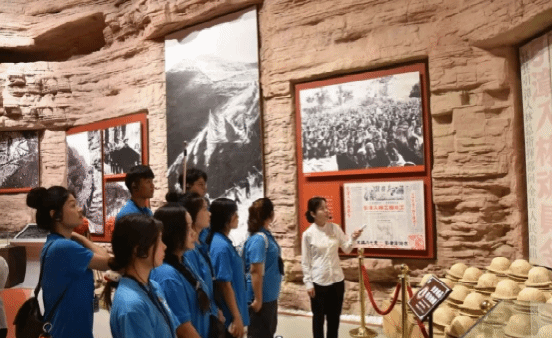 队员们驻足在一张张照片前,凝视着林县人民在悬崖上打钎、放炮的场景,仿佛能听到那震耳欲聋的炮声,感受到他们坚定的信念和无畏的勇气。讲解员生动的讲述,让成员们更加深入地了解了红旗渠修建过程中的艰辛与不易,以及林县人民为了改变命运所付出的巨大牺牲。