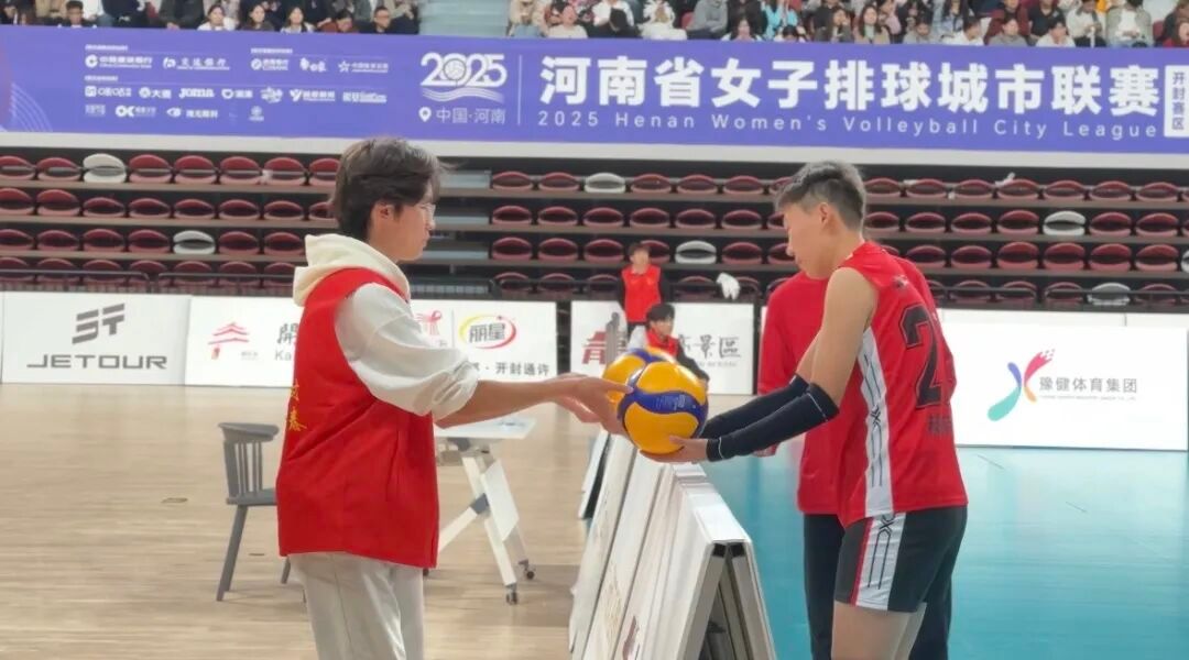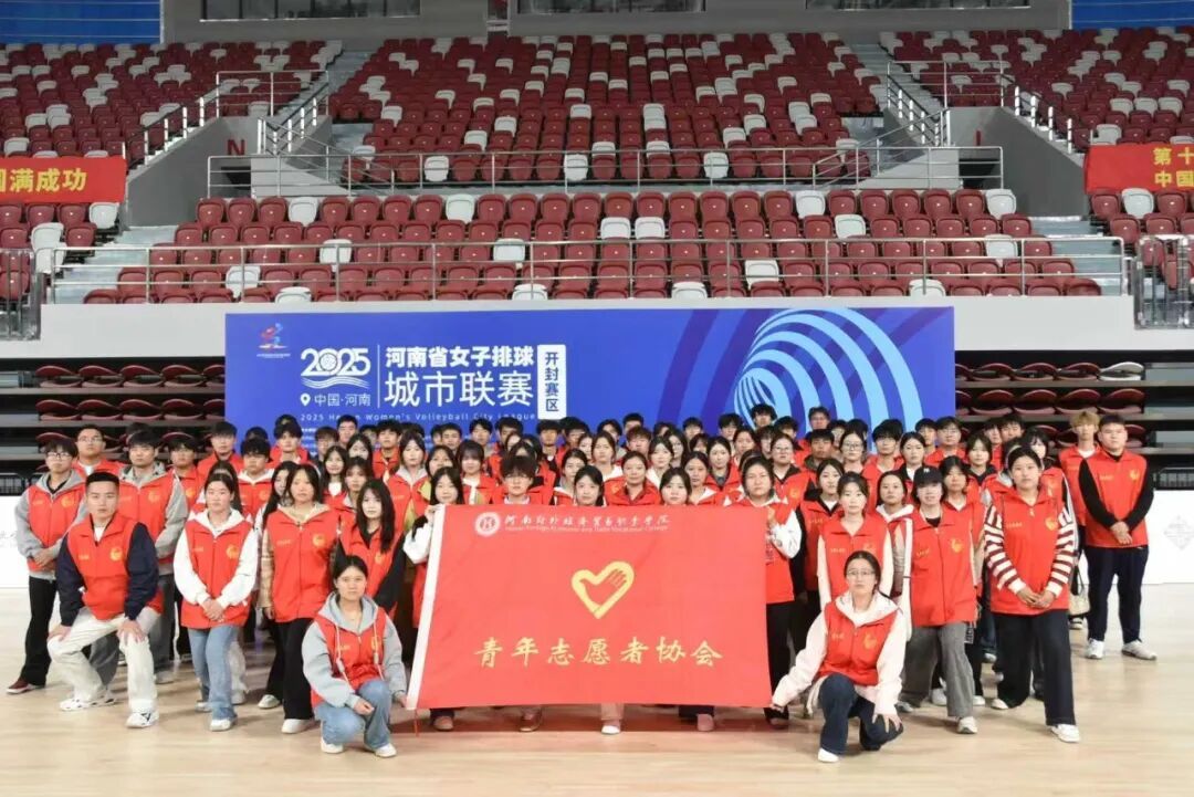 2025年11月1日,河南省女子排球城市联赛第二阶段首轮比赛在开封市体育中心拉开战幕。在开封团市委、开封教体局的号召下,我校团委积极响应,精心组织,选派100名青年志愿者奔赴赛场,为开封龙亭队对阵郑州队的关键比赛提供了全流程志愿服务支持。