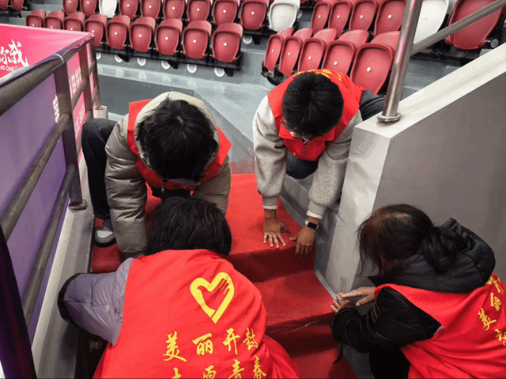 在两场比赛期间,志愿者们始终以高度的责任心投入服务,他们红色的身影活跃在赛场的每个角落。从赛前两小时的提前到岗,到入口处的高效引导,从观众席间的有序指引,到全程不歇的秩序维护,他们始终坚守一线。无论是赛前的细致筹备、赛中的热情协助,还是赛后的有序整理,志愿者们以无处不在的细心付出,为两场赛事的顺利进行奠定了坚实基础。