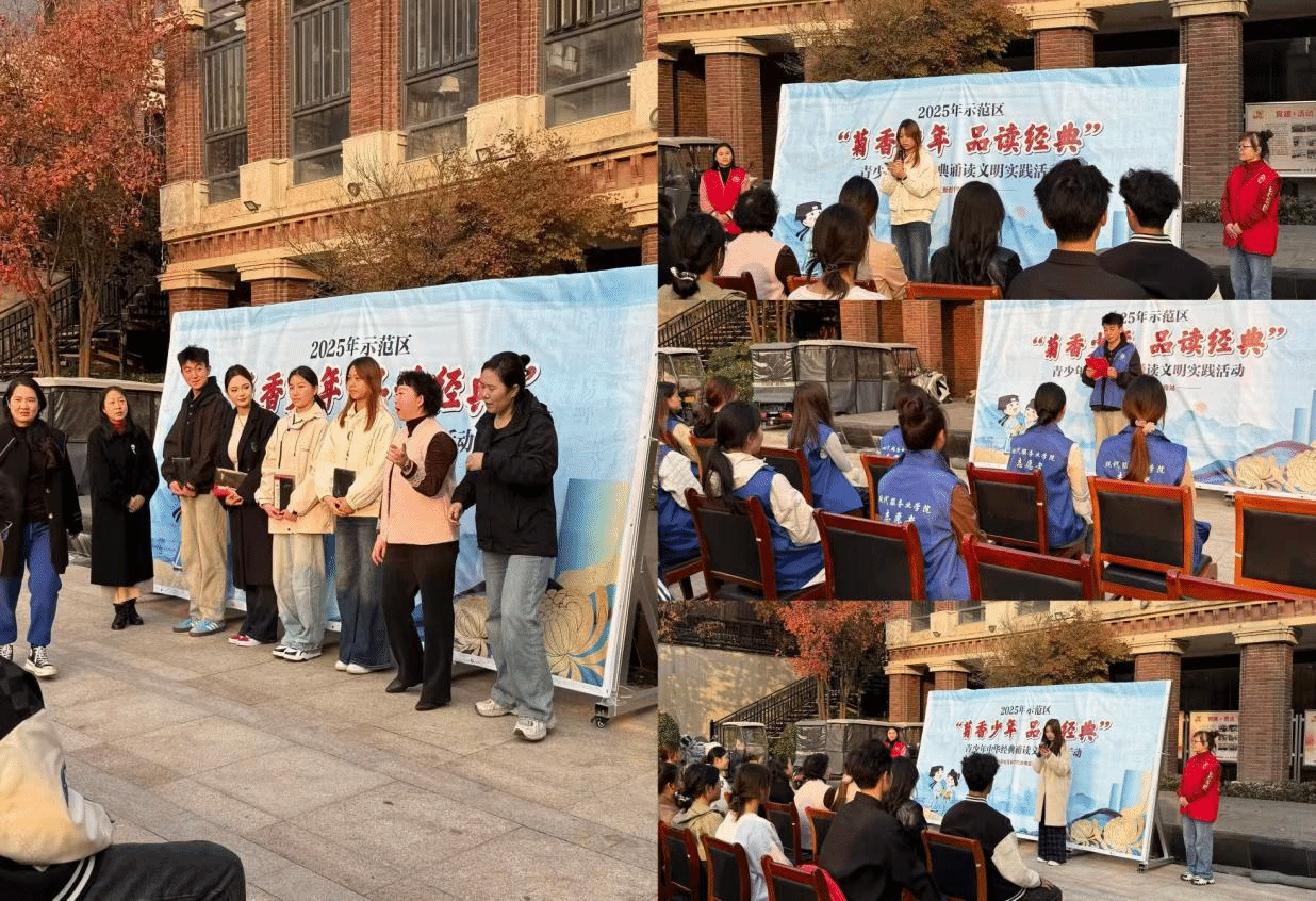 为进一步激活社区文化活力,丰富大家的精神文化生活,志愿者们化身“文化实践参与者”,加入社区“菊香少年 品读经典”诵读活动——结合开封“菊城”文化特色,与社区工作者、居民代表共同诵读经典诗文,在朗朗书声中传递文化温度,也让校社联动的氛围更显融洽。