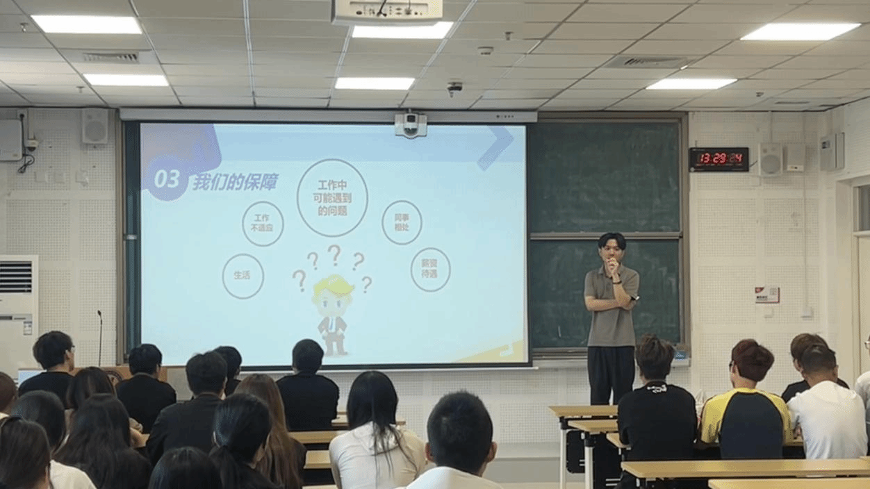 此次宣讲的集团作为义乌电商行业领军企业,业务覆盖国内外多个电商平台。宣讲会上,骆经理介绍了公司发展历程、管理模式,同时分享了义乌大学生创业失败政府代偿、应届生补贴等政策优势。此次招聘提供运营助理、客服、网店美工等多元化岗位,同时还详细的讲解了关于薪资方面的问题。