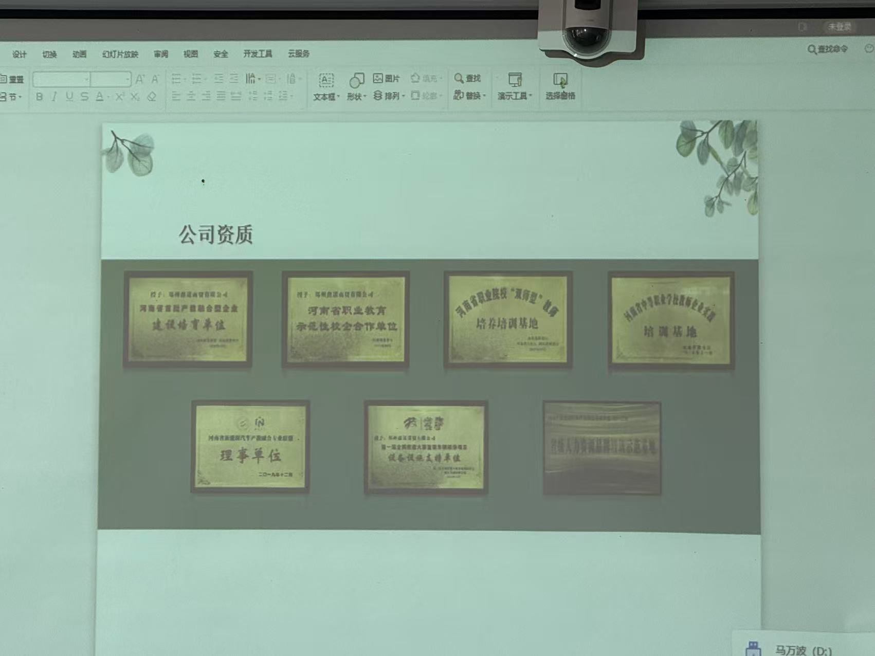 鑫诺企业2025年5月13日宣讲会在教学楼4015盛大举行。宣讲会开始时,老师从鑫诺企业和河南对外经济贸易职业学院合作的港区汽车实训基地讲起,以及公司的简历和在技术研发、产品创新等方面取得的突破性成果,向参会者全面展示了鑫诺企业的强劲发展势头。