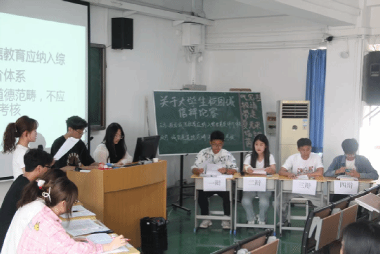 2025年4月27日,应用外语学院在教学楼二阶举办了一场以“校园诚信教育是否应纳入综合素质评价体系”为主题的精彩辩论赛。正方主张“诚信教育应纳入综合素质评价体系”,反方坚持“诚信属于道德范畴,不应量化考核”。双方辩手展开激烈交锋,吸引了众多师生到场观摩。