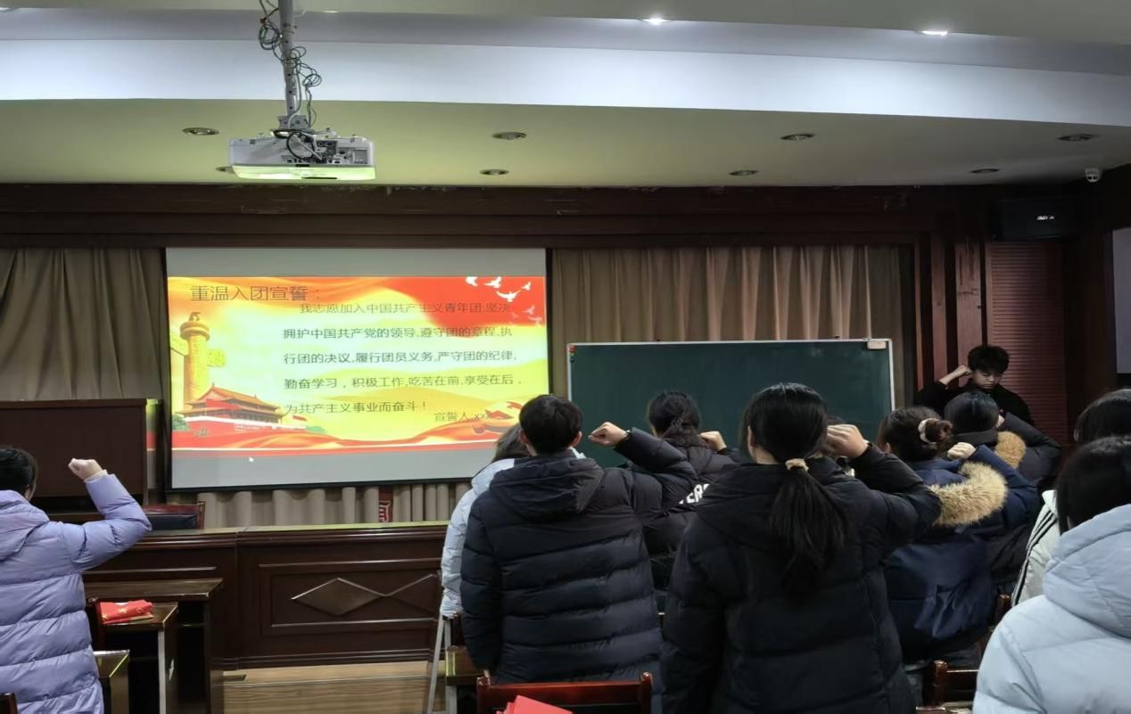 仪式在雄壮的中华人民共和国国歌中拉开帷幕,全体人员起立奏唱国歌,昂扬的旋律点燃了青年学子的理想之火。在全场目光注视下,全体学员面向鲜艳的团旗,举起右拳庄严宣誓,重温入团誓词。“勤奋学习、积极工作,吃苦在前、享受在后,为共产主义事业而奋斗”的铮铮誓言响彻报告厅,彰显着青年一代坚定不移的信念与担当。
