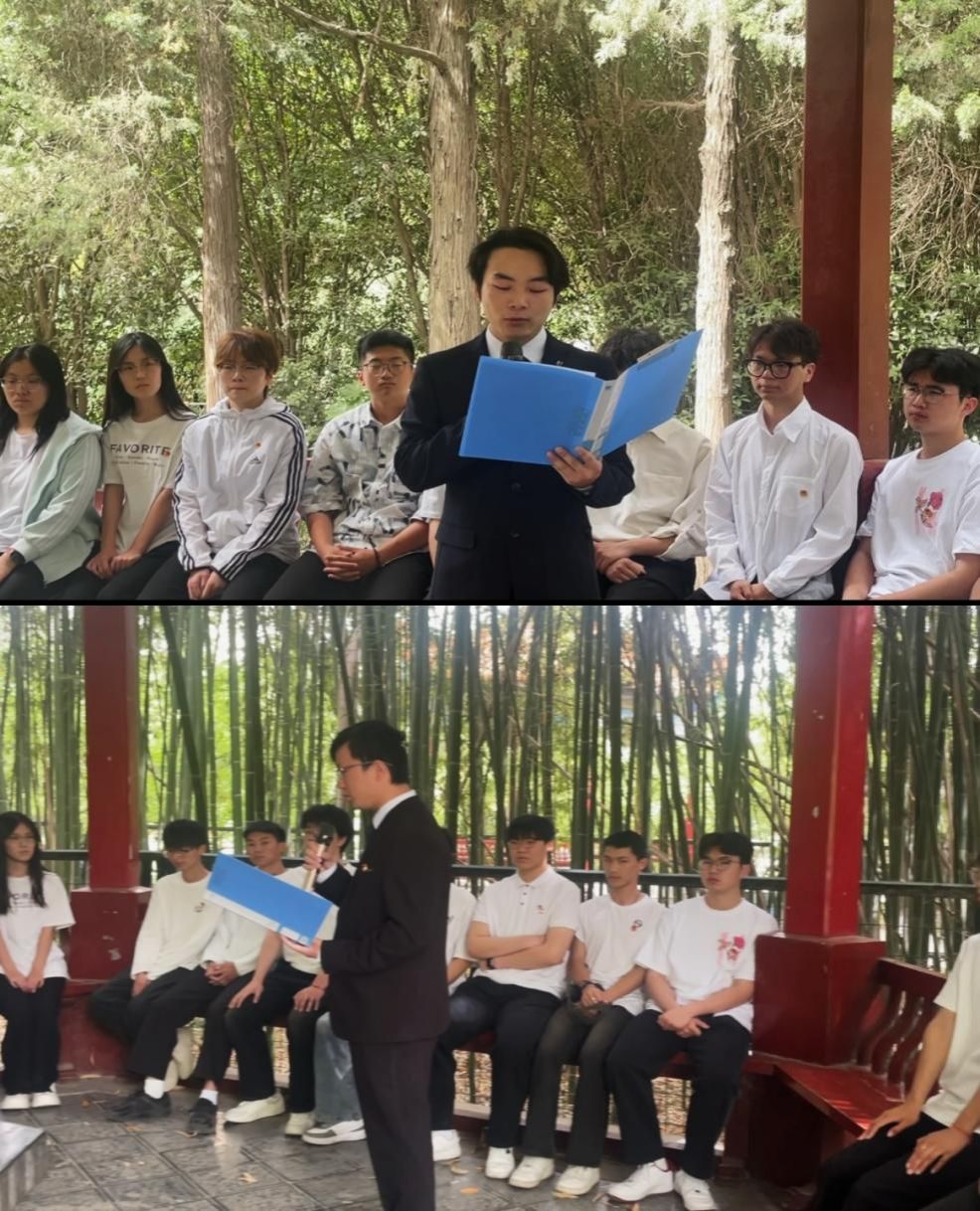 “我志愿继承先烈遗志,坚定理想信念,勇担时代重任……”在碧沙岗烈士祠前,全体学生面向团旗庄严宣誓,铿锵誓言回荡在红色教育基地上空。应用外语学院学生代表平景豪以“五四精神与新时代青年的责任”为主题进行现场宣讲,号召青年学予以革命先辈为榜样,将个人理想融入国家发展,以实际行动践行“请党放心,强国有我”的青春誓言。
